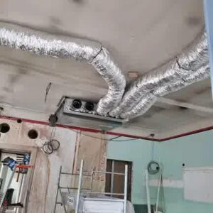 Son unité de traitement de l’air refroidit ou chauffe l’air, puis le fait circuler à travers un réseau de gaines vers les différentes pièces ou zones du bâtiment ou de l’établissement industriel de manière simultanée.